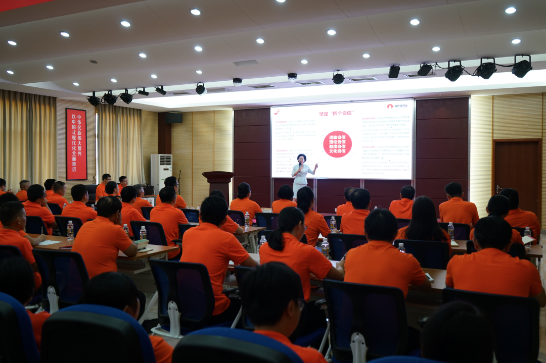 在党课的最后,刘景萍书记对公司全体党员和管理干部在思想和行动上提出了“转变思想、团结一致、分工明确、协作高效”的十六字工作要求,并从新形势、新挑战、新任务的角度对东升国际药业集团下半年的工作提出了三个方面的要求:坚持学在深处,在理论思想上培根铸魂;坚持谋在新处,在深化变革上攻坚克难;坚持干在实处,大兴调研之风,在推动发展上担当作为。