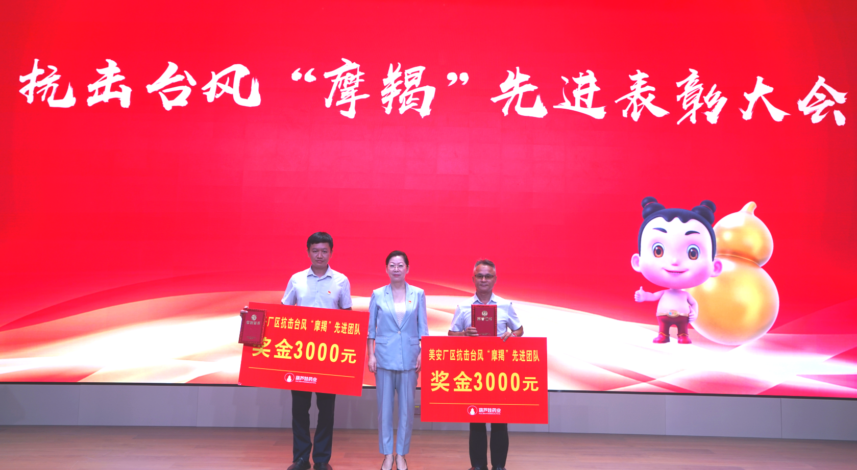 集团党委书记、董事长刘景萍向受表彰的先进个人和团队表示祝贺,向抗击台风“摩羯”的全体员工表示敬意。她指出这次抗台救灾工作充分展示了东升国际人的担当精神和奋斗精神,是集团企业文化建设的重要成果。集团党委统筹组织、群团组织群策群力,全体党员和广大员工积极参与,在抗台抢险、复工复产工作有序推进的同时,积极承担社会责任向受灾地区和受灾居民施以援手、捐资捐物,体现了东升国际药业集团的责任担当。她要求全体员工在今后的工作中,要继续发扬这种精神,积极应对各类风险挑战,奋力推进自贸港医药工业中国式现代化建设。